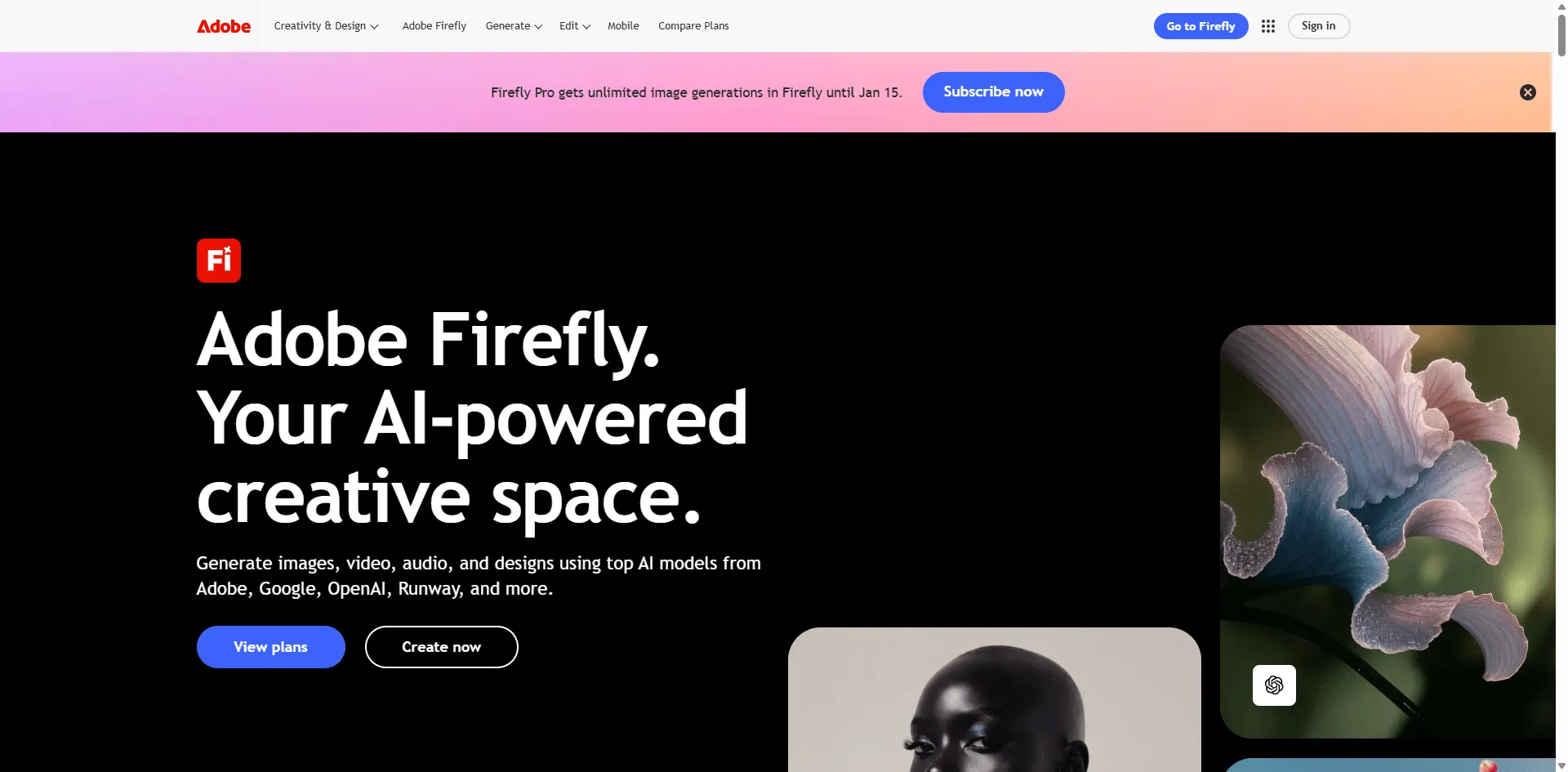 Pricing: 25 free generations/month; Creative Cloud plans from $20/month