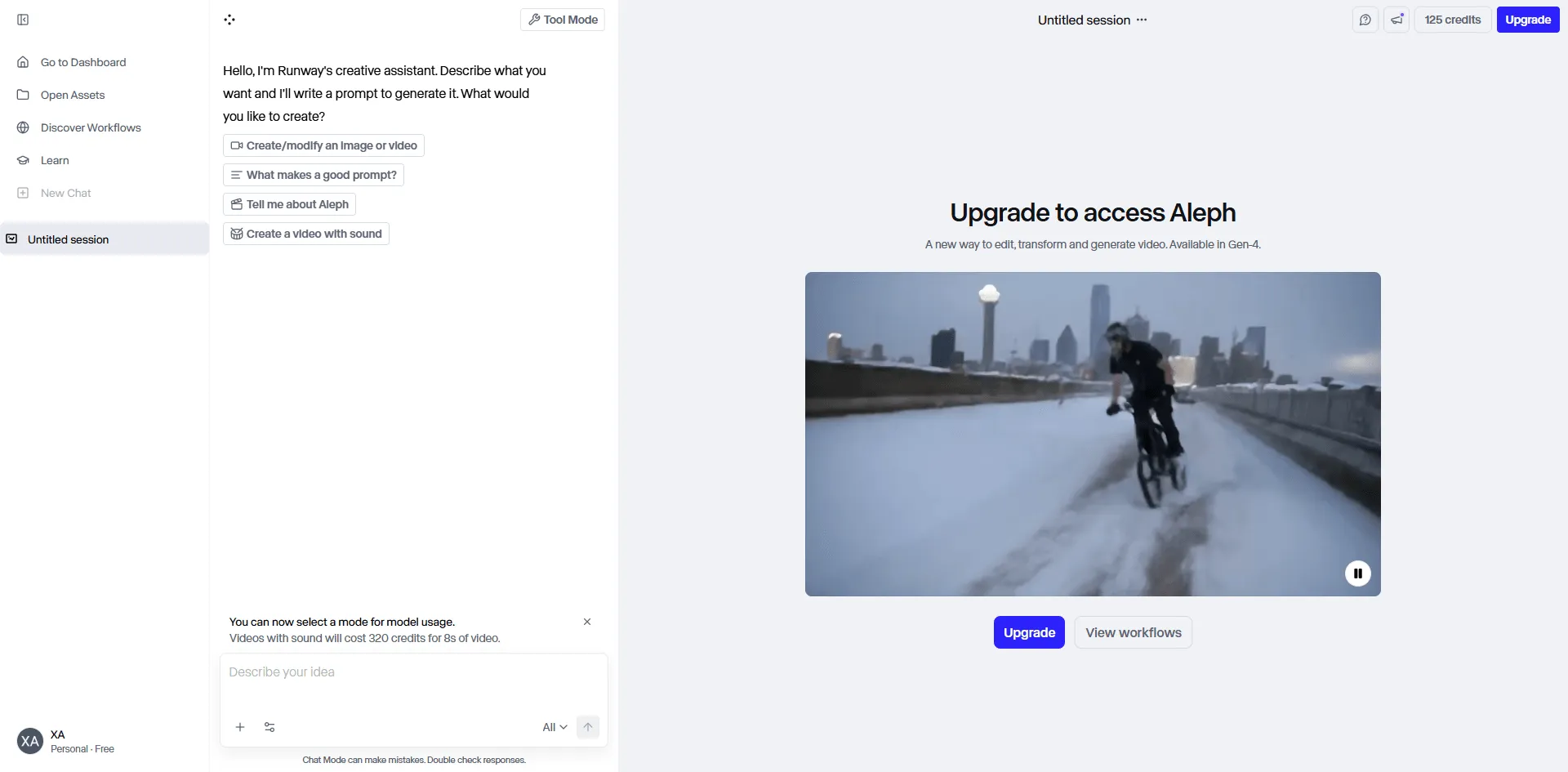 - Each video costs 4 credits (so about 31 generations)