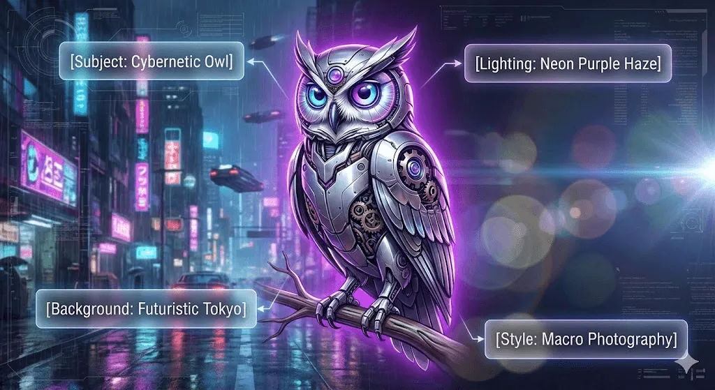 [Subject] + [Style/Mood] + [Details] + [Technical aspects]