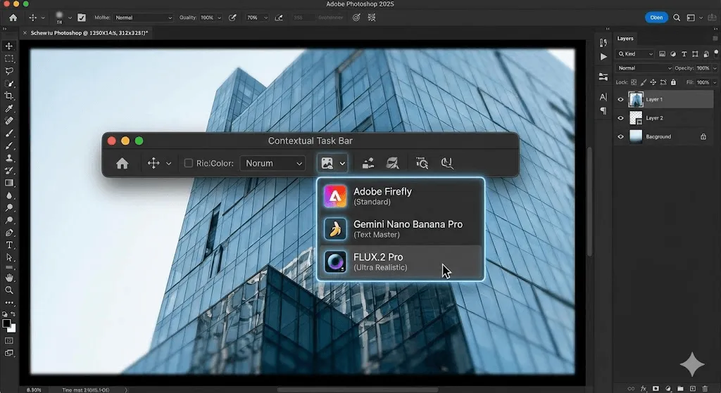 Additionally, Photoshop now supports third party AI models including Google's Gemini Nano Banana Pro and Black Forest Lab's FLUX.2 Pro, giving you more options for specific use cases.